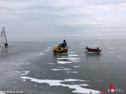 Vor Ort wurde festgestellt, dass ein Eissegler in voller Fahrt in eine offene Wasserstelle geraten war, und sich in weiterer Folge überschlagen hat. Problematisch war, dass sich die Einsatzstelle sehr weit vom Ufer entfernt befand und nur sehr schwer zu erreichen war.
