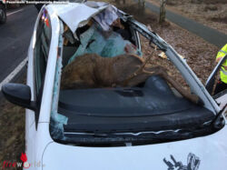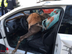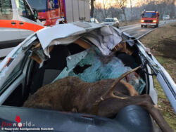Deutschland: 250 kg Hirsch landet bei Unfall in Pkw-Fahrgastraum → Lenker eingeklemmt
