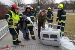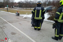HOLLABRUNN (NÖ): Am Sonntagmorgen, 12. Februar 2017, wurden die Mitglieder der Freiwilligen Feuerwehr Hollabrunn zu einer Tierrettung zum Landesklinikum Hollabrunn alarmiert. Vor Ort stellte sich folgendes Bild: Ein aggresiver Schwan hatte sich vor den Haupteingang des Landesklinikum verirrt. Dabei fauchte der Schwan Personen an, die sich ihm näherten und ließ sich nicht fangen.