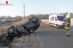 HOLLABRUNN (NÖ): Am Morgen des 15. Februar 2017 wurden die Mitglieder der Freiwilligen Feuerwehr Hollabrunn zu einem Verkehrsunfall am Kudlichweg in Hollabrunn alarmiert. Nach einem Überschlag auf der Straße hinter dem Autohaus Eissner mussten die Einsatzkräfte den Unfallwagen zunächst zurück auf die Räder stellen.