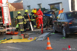 Oö: Feuerwehr befreit Lenkerin nach Unfall in Marchtrenk aus Mopedauto