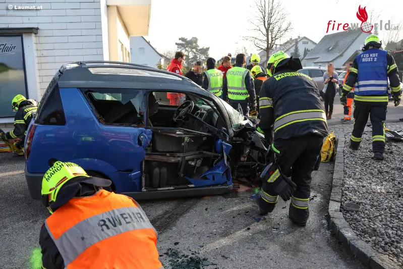 Oö: Feuerwehr befreit Lenkerin nach Unfall in Marchtrenk aus Mopedauto