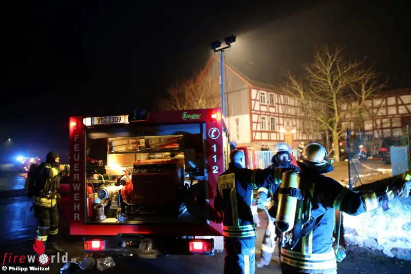 OHMES (DEUTSCHLAND): Der Keller eines Wohnhauses stand am späten Donnerstagabend, 16. Dezember 2017, in der Kirtorfer Straße von Antrifttal-Ohmes in Flammen. Die Freiwillige Feuerwehr der Gemeinde war mit allen Einsatzabteilungen vor Ort und konnte den Brand rasch bekämpfen.