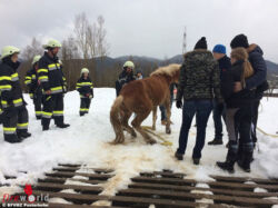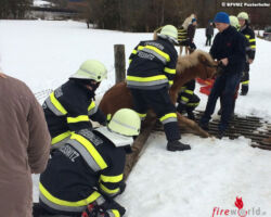 FRESSNITZ (STMK): Am Samstag, 18.02.2017, um 15.18 Uhr wurde die Freiwillige Feuerwehr Freßnitz zu einer Tierrettung im Ort gerufen. Das Pferd einer Reiterin stürzte beim Überqueren eines Weiderostes und blieb darin stecken.