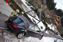Dieses mal kam ein Damentrio mit ihrem Audi A4 bei der Rückwärtsfahrt am Pirchanger vom Weg ab. Die Lenkerin konnte das Fahrzeug gerade noch anhalten, sodass es nicht abstürzte. Alleine schon das Aufstellen der Fahrzeuge war eine Herausforderung an sich.