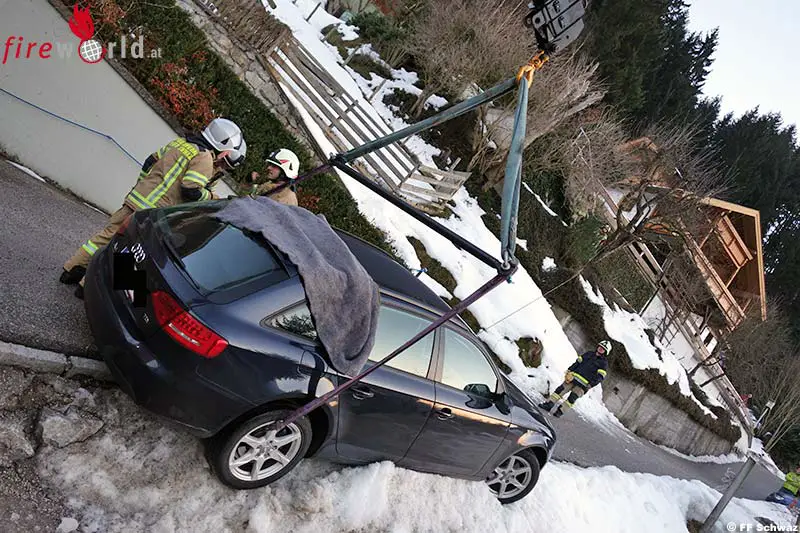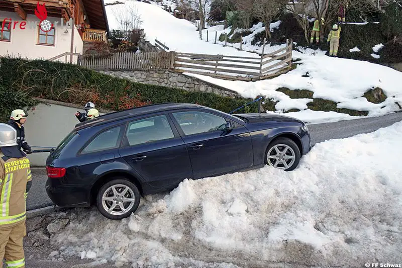 SCHWAZ (T): Die Schwazer Gassen sind berühmt steil sein können. Immerhin wird den Bewohnern gewisser Ortsteile nachgesagt, sie hätten ein Bein kürzer als das andere weil sie in so steilen Lagen wohnen. Immer wieder kommen Fahrzeuge vom Weg ab, meistens wird das dann ein Fall für die Freiwillige Feuerwehr Schwaz.