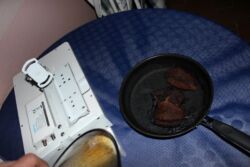 Da niemand in der betroffenen Wohnung öffnete, wurde mittels Schiebeleiter im zweiten Stock Nachschau gehalten. Nach mehrmaligen Klopfen und Rufen öffnete der Wohnungsinhaber die Eingangstüre. Er hatte sein Essen am Herd verkohlen lassen. Das verkohlte Essen wurde ins Freie gebracht und die Wohnung belüftet.