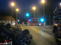 STEINABRÜCKL (NÖ): Am Samstag, 18. Februar 2017, kurz nach 17 Uhr ereignete sich im Kreuzungsbereich der L151 mit der Leopold Lehner Straße in Steinabrückl vermutlich durch Unachtsamkeit und Vorrangverletzung ein Verkehrsunfall zwischen zwei Pkws. Dabei überschlug sich ein Pkw und kam auf dem Dach im Straßengraben zum liegen, der zweite beteiligte Pkw stand quer über zwei Fahrspuren auf der Fahrbahn.