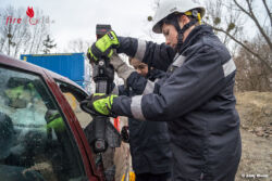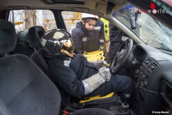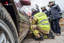 Diese Aufgabe wurde bravourös gemeistert und jeder Jungfloriani hatte die Möglichkeit, den verbliebenen Rest des Unfallfahrzeugs mit dem hydraulischen Rettungssatz "zu bearbeiten". Einziger Wehrmutstropfen: Der vorhergesagte Sonnenschein ergoß sich während der Menschenrettung in Form von kurzen Regengüssen auf die Einsatzkräfte. Aber gut, da muss man durch.