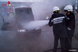 Um 06:30 Uhr wird die diensthabende Mannschaft jäh aus dem Schlaf gerissen: "Fahrzeugbrand" lautet die Alarmierung. Umgehend rücken die Florianis mit zwei Fahrzeugen zur Einsatzstelle aus. Nach einer kurzen Erkundung wird der Brand mittels Schnellangriffseinrichtung bekämpft und abgelöscht.