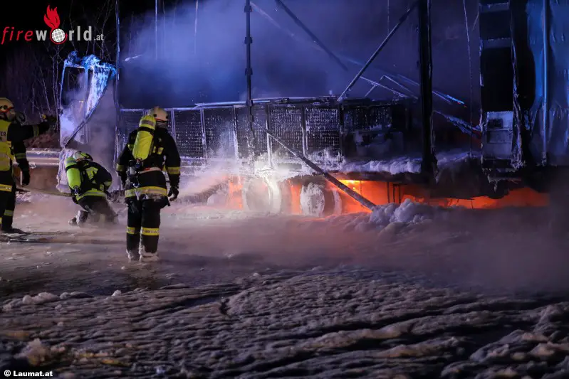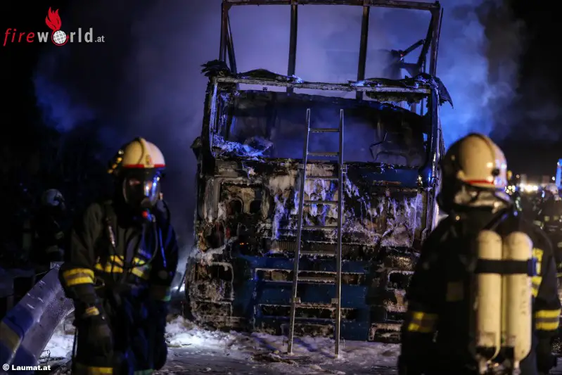 MEGGENHOFEN (OÖ): Fünf Feuerwehren standen am Dienstag, 21. Februar 2017, in den frühen Morgenstunden bei einem Lkw-Vollbrand auf der Innkreisautobahn bei Meggenhofen (Bezirk Grieskirchen) im Einsatz.