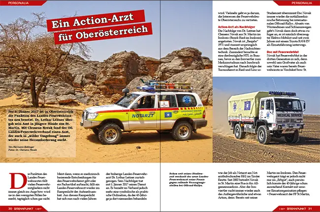 Per 1. Jänner 2017 ist in Oberösterreich die Funktion des Landes-Feuerwehrarztes neu besetzt. Dr. Lothar Leitner übergab sein Amt in jüngere Hände aus St. Martin. Mit Clemens Novak fand der Oö. Landes-Feuerwehrverband einen Arzt, der auch in „wilder Umgebung“ immer wieder seine Herausforderung sucht.