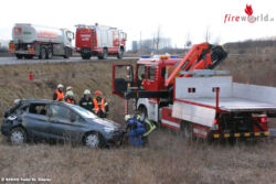 MICHELHAUSEN (NÖ): Am 21. Februar 2017 am späteren Nachmittag wurden die Feuerwehren Michelhausen und Michelndorf zu einem Verkehrsunfall mit eingeklemmter Person gerufen. Auf der L2090 der HL-Begleitstraße war ein Auto bei der Abzweigung nach Michelhausen verunglückt.