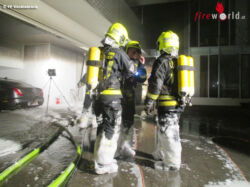 Nach kurzer Zeit konnte die Intensität des Brandes gebrochen und der Brand unter Kontrolle gebracht werden. Weitere Atemschutztrupps führten die Nachlöscharbeiten durch. Parallel zum Löschangriff wurde das gesamte Objekt belüftet, da es aufgrund der offenen Bauweise zur Verrauchung des ganzen Hauses kam. Um 04:00 Uhr konnte „Brand aus“ gegeben werden.