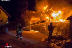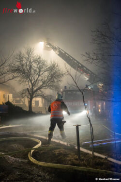 DÜRNSTEIN (NÖ): Im Gemeindegebiet von Dürnstein waren seit der Nacht auf den 24. Februar 2017 zahlreiche Feuerwehren bei einem Großbrand im Einsatz. Das Wirtschaftsgebäude eines Bauernhofes geriet aus vorerst unbekannter Ursache in Brand. Die Flammen breiteten sich zum Teil auch auf das angrenzende Wohngebäude aus.