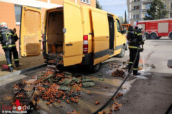 ST. PÖLTEN (NÖ): Auf einem Parkplatz im Süden St. Pöltens kam es zu Mittag des 23. Februar 2017 zum Brand eines Eiertransporters. Beim Entladen des Transporters entzündete sich anscheinend einer der Eierkartons – vermutlich durch eine Zigarette – woraufhin sich das Feuer im Inneren des Wagens ausbreitete.