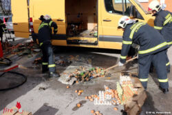 Durch die leichte Entzündbarkeit der Kartons sowie der Eierschachteln griff das Feuer rasch auf den Großteil der geladenen Ware über. Dank aufmerksamen Passanten, welche eine größere Brandausbreitung mit mehreren Feuerlöschern verhindern konnten, brannte das Fahrzeug nicht völlig aus. Die Ladung von mehreren Tausend Eiern wurde leider zur Gänze zerstört und musste nach den Löscharbeiten der Feuerwehr in einem Wagen des Wirtschaftshofes entsorgt werden.