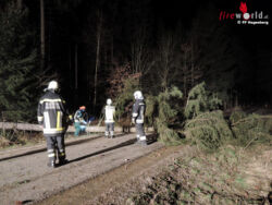 HAGENBERG (OÖ): Mit wenig Schlaf mussten die Mitglieder der Freiwilligen Feuerwehr Hagenberg in der Nacht auf Freitag, 24. Februar 2017, auskommen. Heftige Windböen ließen einige Bäume im Hagenberger Gemeindegebiet auf wichtige Verkehrswege stürzen, die daraufhin blockierten waren.