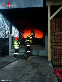 Bereits wenige Minuten nach der Alarmierung um 06:25 Uhr trafen die ersten Einsatzkräfte der FF Ludersdorf unter der Einsatzleitung von HBI Gerald Seidl am Industriegelände ein und begannen mit einem umfassenden Löschangriff unter schwerem Atemschutz. Durch den enorm schnellen Einsatz mehrerer Atemschutztrupps der FF Ludersdorf und durch die Unterstützung der nachkommenden Feuerwehren Albersdorf und Gleisdorf konnte ein Übergreifen der Flammen auf alle angrenzenden Wohn- und Betriebsgebäude verhindert werden.