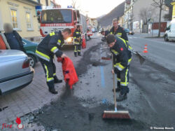 Beamte der Polizei Gloggnitz verständigten daraufhin die Feuerwehr, um das Motoröl, das bereits von vorbeifahrenden Fahrzeugen verbreitet wurde, zu binden. Mittels Ölbindemittel wurde das Öl aufgenommen und einer entsprechenden Entsorgung durch die Gemeinde zugeführt. Die Restölbeseitigung wurde mit Bioversal, das als ökotoxilogisch unbedenklichen eingestuft werden kann, vorgenommen. Nach rund 1,5 Stunden konnte der Einsatz beendet werden.