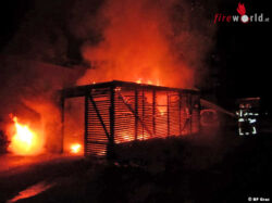 Um 01.12 Uhr wurden die Einsatzkräfte an die Einsatzstelle im 12. Grazer Bezirk alarmiert. Beim Eintreffen der Feuerwehr stand die ca. 25m² große Holzkonstruktion mit darin gelagerten Müllcontainern und zwei in der Nähe abgestellte KFZ in Vollbrand. Dichter Brandrauch umhüllte die Wohnsiedlung und die Flammen drohten auf die angrenzenden Gebäude überzugreifen.