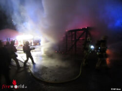 Umgehend wurden drei C- Rohre von Angrifftrupps zur Brandbekämpfung und Verhinderung der Brandausbreitung vorgenommen. Gleichzeitig wurde die Löschwasserversorgung durch eine Zubringerleitung von einem Hydranten sichergestellt.