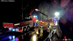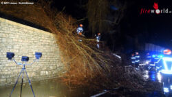 Der Baum musste an der Mauerkrone mittels Motorsägen durchtrennt und anschließend vom Kran der Wechselladerfahrzeuges geborgen und abtransportiert werden. Nach erfolgten Reinigungs- und Aufräumarbeiten rückten die Feuerwehren wieder in ihre Rüsthäuser ein, die B320 wurde um 22:15 Uhr wieder für den Verkehr freigegeben.