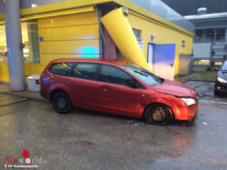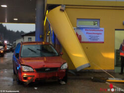Oö: Auto kracht in Frankenmarkt gegen Gebäude der Tankstelle