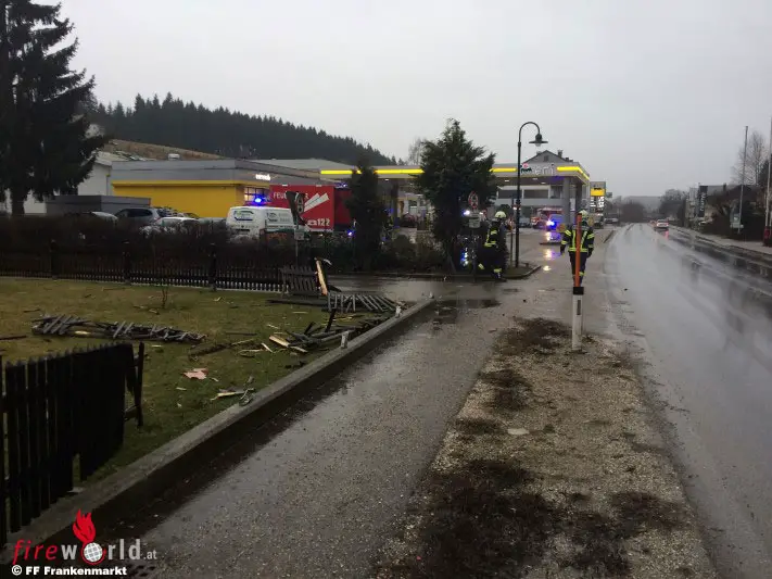 FRANKENMARKT (OÖ): Am 02.03.2017 um 06:50 Uhr wurde die Feuerwehr Frankenmarkt zu einem Verkehrsunfall mit eingeklemmter Person bei der Eni-Tankstelle an der B1 in Steinleiten alarmiert. Ein Lenker verlor in Fahrtrichtung Salzburg aufgrund gesundheitlicher Probleme die Kontrolle über sein Fahrzeug.