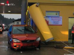 Ein Fahrzeuglenker verlor in Fahrtrichtung Salzburg aufgrund gesundheitlicher Probleme die Kontrolle über sein Fahrzeug und fuhr über die Gegenfahrbahn, durchstieß einen Holz- und einen Maschendrahtzaun, fuhr anschließend quer durch das Tankstellengelände und kam schließlich am Tankstellengebäude zum Stehen.