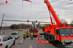 Alle Bemühungen eine Fachfirma zu finden, welche schnellstmöglich die Ampelanlage abträgt, schlugen fehl. Deshalb musste die Feuerwehr mit neun Fahrzeugen, unter anderem einem Kranwagen, anrücken und diese Aufgabe übernehmen. Mit Hilfe des Kranwagens wurde die über fünf Fahrbahnen verlaufende Ampelbrücke gesichert. Danach wurden die Ampelmasten links und rechts abgetrennt und das Metallgerüst konnte sicher abgelegt werden.