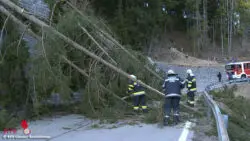Ebenso wurden auch die Feuerwehren Hall, Weng und Trieben zu Sturmeinsätzen gerufen, um Bäume von Verkehrswegen zu entfernen.