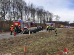 BREITENBRUNN AM NEUSIEDLERSEE (BGLD): Am 06.03.2017 um 10:56 Uhr wurde die Feuerwehr Breitenbrunn gemeinsam mit der Feuerwehr Kaisersteinbruch zu einem Verkehrsunfall mit eingeklemmter Person alarmiert. Ein Pkw hatte sich auf der L311 überschlagen und blieb in der Folge am Dach auf der Fahrbahn liegen.