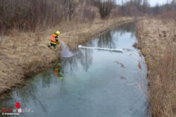 PUCKING (OÖ): Ungewöhnliche Fahrzeugbergung Mittwochfrüh, 8. März 2017. in Pucking (Bezirk Linz-Land): In einem Nebenarm der Traun entdeckten Arbeiter einen Pkw. Vom Lenker fehlte jede Spur.
