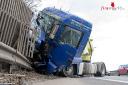 Oö: Sattelschlepper auf A7 in Linz gegen Lärmschutzwand geprallt
