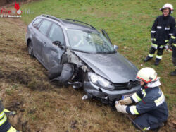 Eine Lenkerin fuhr mit ihrem VW Golf Kombi von Steyr Richtung Weistrach. In einer Linkskurve geriet das Fahrzeug auf den Bordstein des Brückengeländers wobei sich das Fahrzeug eindrehte über die Gegenfahrbahn schlitterte und die Böschung in den Straßengraben rutschte. Die Lenkerin hatte großes Glück das zu diesem Zeitpunkt kein Gegenverkehr kam und sich das Auto auch nicht überschlug. Somit wurde seitens der Feuerwehr die Unfallstelle abgesichert und die Batterie des Fahrzeuges abgeklemmt. Anschließend wurde mit der Seilwinde des RLFA 2000 der Golf entlang der Böschung auf einen Güterweg gezogen.