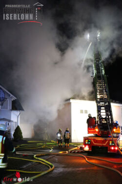 ISERLOHN (DEUTSCHLAND): Um 02:48 Uhr des 10. März 2017 wurde der Einsatzzentrale der Berufsfeuerwehr Iserlohn ein brennendes Gartenhaus an der Hennener Bahnhofstraße gemeldet. Bei Eintreffen des Löschzugs der Berufsfeuerwehr war das Feuer bereits auf die angrenzende Garage und dem Dachstuhl des Wohnhauses übergegangen.