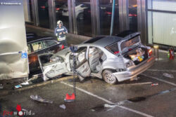 Das Fahrzeug war ins Schleudern gekommen, hatte eine Straßenlaterne gerammt und war rund 80 Meter gegen eine Leuchtreklame und zwei abgestellte Fahrzeug geprallt. Die Feuerwehr musste eine Person aus dem Fahrzeug befreien. Die drei Insassen wurden nach der Erstversorgung durch das Notarzt-Team mit der Rettung zur weitern Versorgung ins Krankenhaus nach Linz gebracht. Laut Angaben des Inhabers vom Autohaus ist ein beträchtlicher Schaden entstanden. Ein durchgeführter Alkotest bei dem 19-jähriger Lenker war negativ.