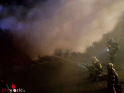 Die Einsatzkräfte rüsteten sich umgehend mit schwerem Atemschutz aus und begannen die Brandbekämpfung mittels Hochdruck-Rohr. Es wurde ein umfassender Löschangriff mit zwei weiteren Strahlrohren vorgenommen, wodurch ein Übergreifen der Flammen auf die angrenzende Lagerhalle verhindert werden konnte.
