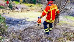 Letztendlich konnte über dem Steinbruch eine Zufahrt für das zweite Löschfahrzeug gefunden werden. Von dort aus mussten die Feuerwehrkräfte eine Schlauchleitung von 220 Metern den Hang herab zur Einsatzstelle verlegen. Anschließend konnte die Brandstelle ausreichend abgelöscht werden so das keine Gefahr der Rückzündung mehr ausging.