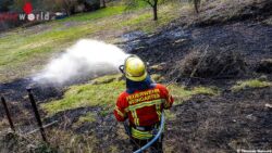 Vor Ort hatte eine Fläche von ca. 250 m² gebrannt die sich bereits langsam ausbreitete. Die züngelnden Flammen am Rande der Brandfläche konnte von den Einsatzkräften schnell erstickt werden. Da sich unter der verbrannten Asche noch zahlreiche heiße Stellen befanden, musste die Brandstelle noch mit Wasser abgelöscht und ausreichend gewässert werden. Hierfür wurde ein weiterer Alternativweg für die Löschfahrzeuge gesucht.