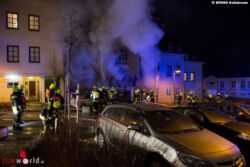HOLLABRUNN (NÖ): Mehrere Bewohner meldeten am 13.03.2017 kurz nach 02:00 Uhr eine Explosion über den Feuerwehrnotruf. Wenige Minuten später rückten die Kameraden der Freiwilligen Feuerwehr Hollabrunn zum Einsatzort aus. Bereits auf der Anfahrt erhöhte Einsatzleiter Christian Holzer die Alarmstufe und löste somit Alarm für sechs weitere Feuerwehren aus.