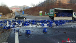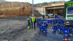 BRUCK AN DER MUR (STMK): Die Freiwillige Feuerwehr Oberaich wurde am 13.03.2017 um 06:52 Uhr von der Landesleitzentrale „Florian“ Steiermark zu einem technischen Einsatz alarmiert. „Abfahrt S6 Oberaich – Lkw hat Bierladung verloren“ lautete der Einsatzbefehl.