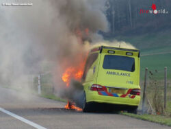 TENNIKEN (SCHWEIZ): Am Dienstag, 14. März 2017, kurz vor 16.30 Uhr, geriet in Tenniken BL auf der Autobahn A2 Richtung Bern/Luzern ein Ambulanzfahrzeug in Brand. Die beiden Fahrzeuginsassen blieben unverletzt. Am Fahrzeug entstand Totalschaden.