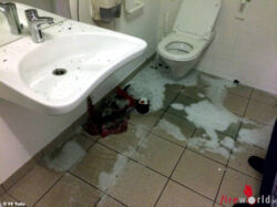 Bei Eintreffen der Feuerwehr waren der Eingangsbereich des Gebäudes und eine WC-Anlage verraucht. Die, durch die Sirenen des Räumungsalarmes geweckten, Bewohner hatten bereits das Gebäude verlassen und sich ins Freie begeben. Eine noch unbekannte Person hatte wieder in einer WC-Anlage im öffentlichen Bereich des Erdgeschosses Papierhandtücher und einen Mülleimer in Brand gesteckt.