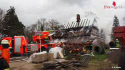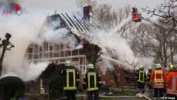 GROSSENWÖRDEN (DEUTSCHLAND): Am Freitag, dem 17.03.17, kurz nach 12:00 Uhr, kam es in Großenwörden, Im Strich, zu einem Großbrand. Ein 12 Jahre altes Reetdachhaus brannte bis auf die Grundmauern nieder.