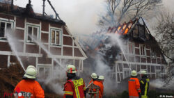 Die 56-jährige Bewohnerin hatte den Brandausbruch im Bereich des Schornsteines entdeckt und die Rettungskräfte alarmiert. Die Bewohner -ein Ehepaar mit einer erwachsenen Tochter- konnten sich ungefährdet ins Freie begeben. Die über 100 eingesetzten Feuerwehrkräfte aus Himmelpforten, Großenwörden, Hüll, Engelschoff, Burweg, Neuland, Stade und vom Landkreis Stade konnte das Niederbrennen des Hauses nicht mehr verhindern.
