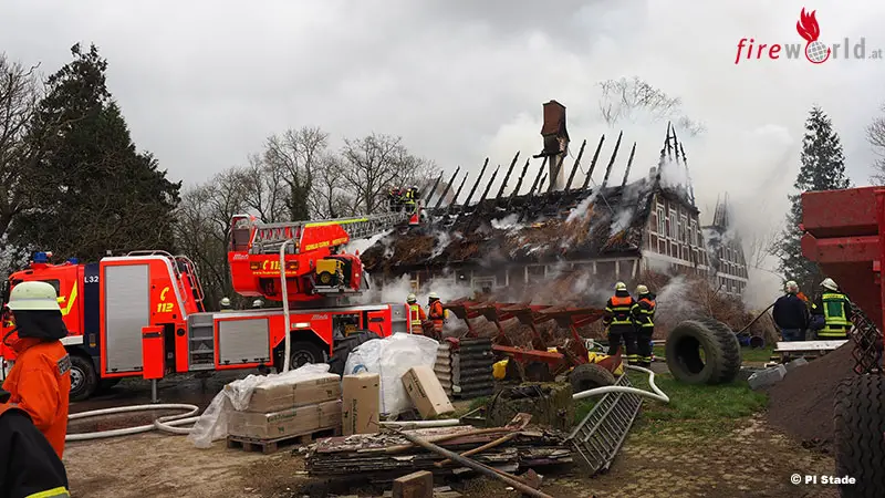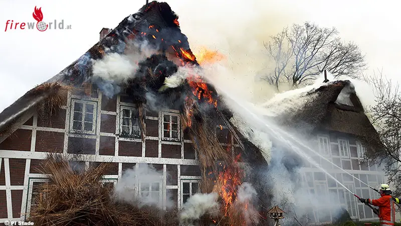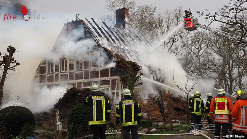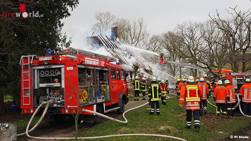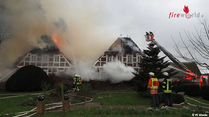 Die 56-jährige Bewohnerin hatte den Brandausbruch im Bereich des Schornsteines entdeckt und die Rettungskräfte alarmiert. Die Bewohner -ein Ehepaar mit einer erwachsenen Tochter- konnten sich ungefährdet ins Freie begeben. Die über 100 eingesetzten Feuerwehrkräfte aus Himmelpforten, Großenwörden, Hüll, Engelschoff, Burweg, Neuland, Stade und vom Landkreis Stade konnte das Niederbrennen des Hauses nicht mehr verhindern.