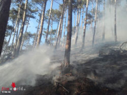 Sofort nach Ankunft der alarmierten Berufsfeuerwehr wurden insgesamt sechs Löschleitungen, teilweise unter Atemschutz, zur Brandbekämpfung vorgenommen. Gleichzeitig wurden umliegende Bereiche des Waldstückes nach gefährdete Personen abgesucht.