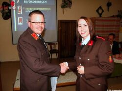 Die erfolgreiche Nachwuchsarbeit wird belegt durch den Erwerb von sechs Wissenstestabzeichen und zwei Feuerwehrjugend-Leistungsabzeichen. Des Weiteren wurden zwei Funkleistungsabzeichen in Silber, ein Feuerwehr-Leistungsabzeichen in Silber und ein Wasserwehr-Leistungsabzeichen in Silber errungen. Ein Highlight war die erfolgreiche Absolvierung der Leistungsprüfung „Technische Hilfeleistung“, bei der 12 Kameraden das Leistungsabzeichen in Bronze erwerben konnten.